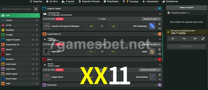 A aposta XX11 oferece aos jogadores a experiência mais conveniente de apostas em eSports!